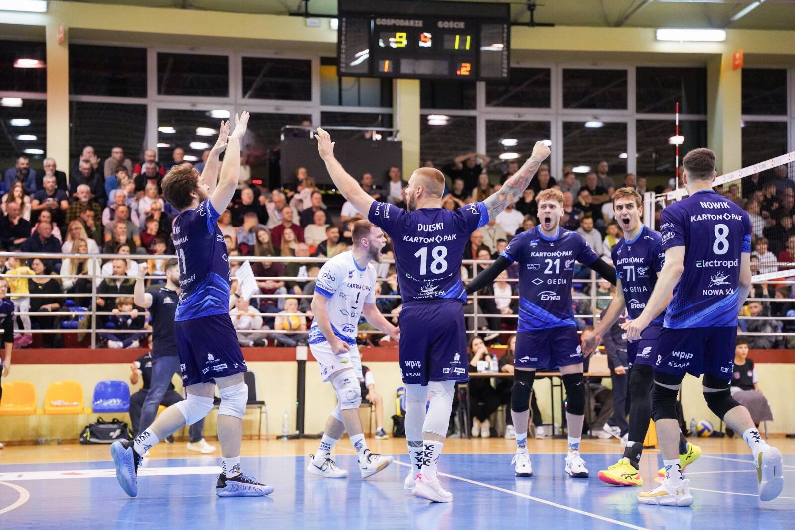 Astra kontynuowała swój koncert w polu serwisowym i momentalnie zaliczyła serię 4:1. Obie ekipy sporo ryzykowały zagrywką. Coraz lepiej radził sobie Nowik, ale po stronie gospodarzy miał rywala w postaci Dawida Sokołowskiego. Równa gra trwała jednak tylko do stanu 8:9. Potem w ataku błędy zaczął popełniać Jędrzej Bąkiewicz, a goście czujnie pracowali w bloku. Zrobiło się 12:19 i KPS stracił wszelkie nadzieje. Od tego czasu do zamknięcia seta zdobył tylko dwa „oczka”.