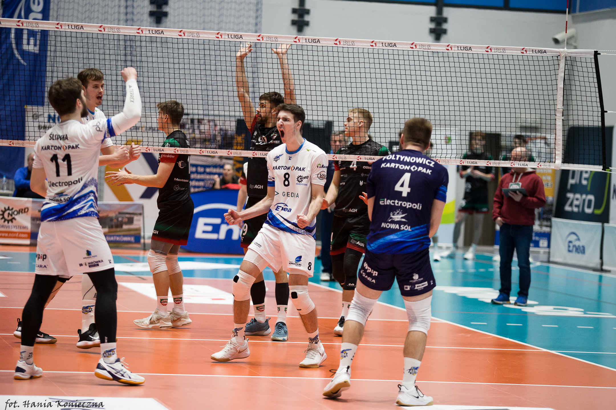 Astra Nowa Sól wygrała z AZS AGH Kraków 3:1 (30:28, 25:21, 22:25, 25:17) w meczu dziesiątej kolejki PLS 1. Ligi. MVP Oskar Laskowski.